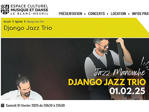Venez vivre une soirée inoubliable avec des puristes du style dans la lignée de Django Reinhardt et de Stéphane Grappelli. Le Django Jazz Trio vous transporte dans les glorieuses années de ces musiciens de génie, en partageant avec enthousiasme le swing et la rythmique dynamique du jazz manouche. Ce concert vous promet une expérience musicale unique, mêlant harmonieusement le chant tzigane, le style circassien de la famille Romanès et une prestation fidèle aux maîtres du genre.